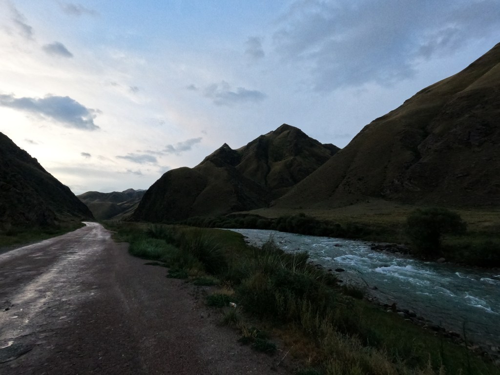 Precious, precious time is flying away. I hurry as much as I can to patch my tube and get done with the downhill while it’s still day. At least I succeed in this. When night falls, I’m back on the road I left 4 or 5 hours ago. Looking at the profile it looks like I still have a chance to make it to Tash Rabat around 1am if the road doesn’t deteriorate.
