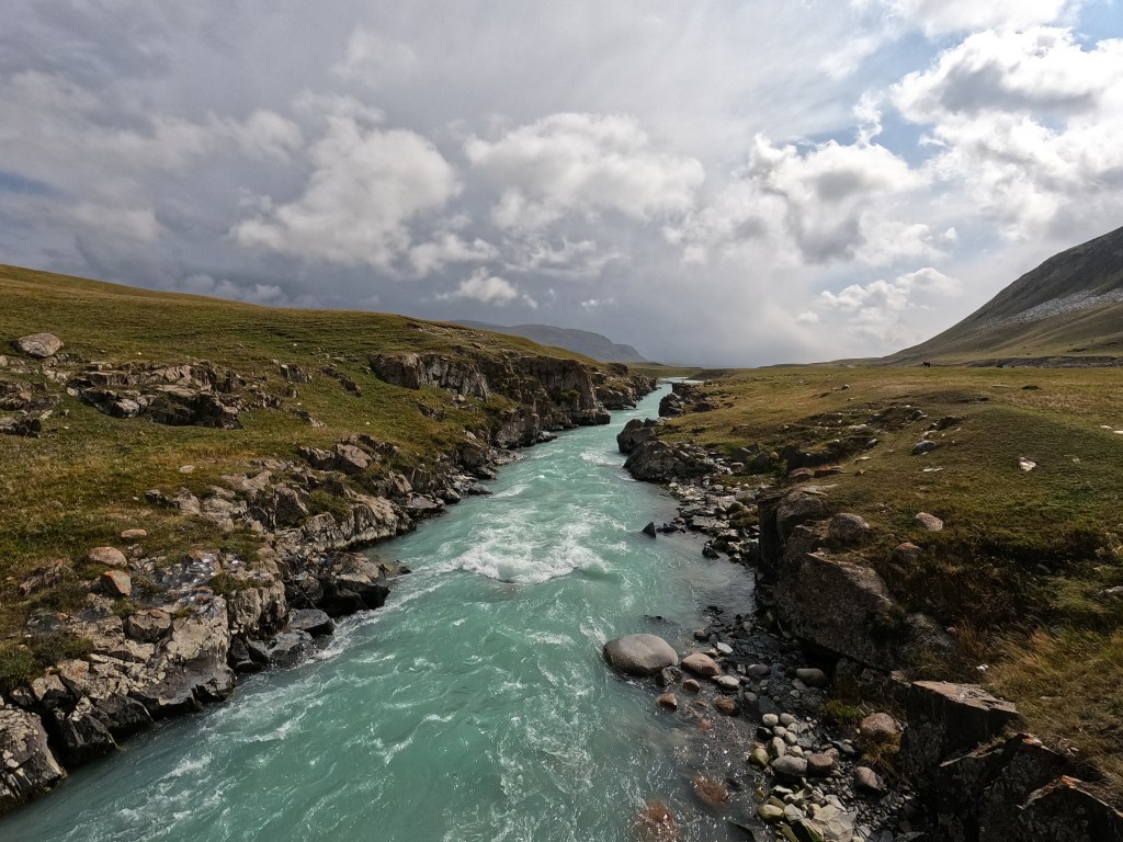I keep riding on a road that goes from bad to worse. If I could find any kind of rhythm, the numerous river crossings would make sure I’d lose it. It’s just a painfully slow progress despite the fact that I’m gaining very little elevation. I take a lot of precautions when crossing the rivers. They’re usually shallow and easy to cross but it only takes one mistake to ruin all my efforts. And of course, at some point, despite being very careful, I make this mistake and step in the water. It is freezing cold and I have wet feet. On top of that, I’m moving at an alarmingly slow pace and my hopes of reaching Tash Rabat in time to grab some sleep in the comfort of a yurt are slowly but surely getting crushed.